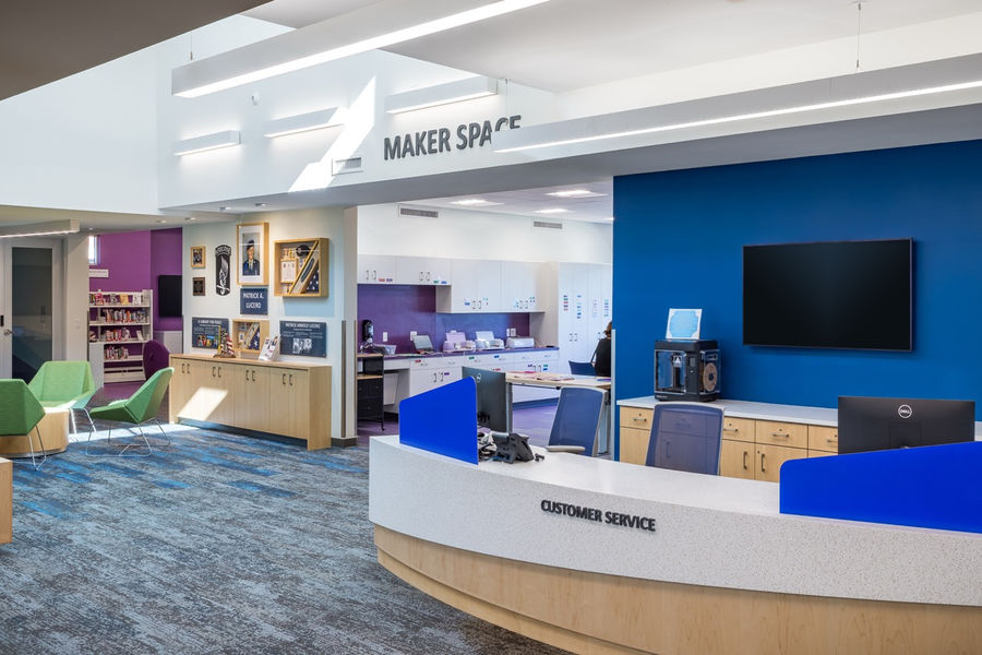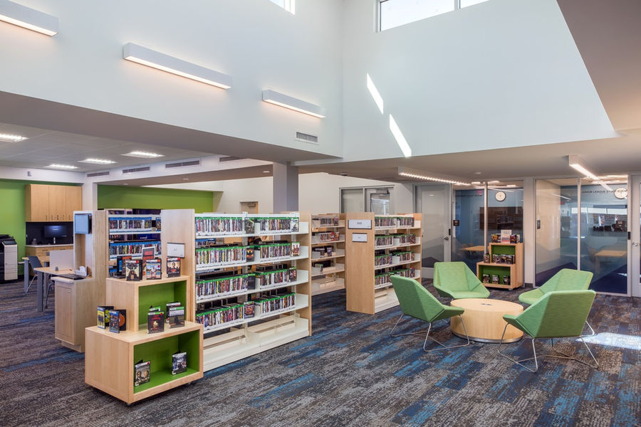 The Barkman and Lucero Branches sit 2 miles apart but serve communities that differ greatly in terms of demographics and socio-economic characteristics. Both branches have received a small addition that will provide new meeting rooms with after-hours access. The updated layouts house noisier spaces near the door and quieter spaces deeper into the building. Interior palettes are based on subdued nature motifs. Mobile book displays, lowered shelving, content creation technology, and improved functionality are hallmarks of both buildings.