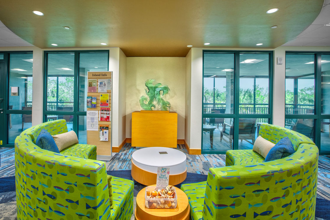 Contrasts of warm woods and crisp white beach stones with layered shell textures and resins with natural embedded materials enhance custom built cabinetry and carry the natural island inspiration throughout the library. The Children and Teen spaces will feature brighter colors inspired by a combination of the fish swimming underwater in the Gulf of Mexico, and the colorful shells visitors find during a beach walk at sunset.
