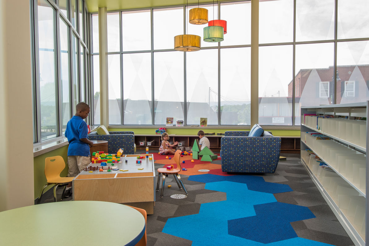 The prominent location of the library, with its community plaza, rooftop garden, and vendor-operated café, bring added vibrancy to the downtown. The site is a gateway into the historic downtown and leads to destinations along the Blue Ridge Parkway.